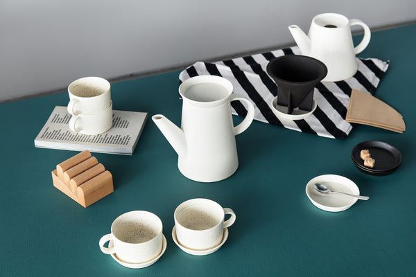 スイスを拠点に活動するビッグゲームは、ドリップコーヒーを楽しむセットとケトルやポットなどのキッチンツールからなるシリーズをデザインしました。ベーシックなフォルムが特徴のアイテムはどれも、最も先進的な素材と最先端の製陶技術を用いて作られています。多孔質の磁器で作られたコーヒーフィルターは濾過フィルターの効果があり、柔らかな味わいが加味されます。ケトルや料理用ポットは、耐火度の高い土を使用しているため、直火やオーブン、レンジでの使用も可能です。料理をしてそのままテーブルに置けば食器としても活躍。日常の道具として幅広く応用が利くデザインです。