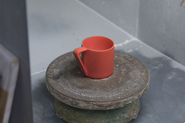 デザイナーの藤城成貴は400年に渡る有田焼の歴史を探求し、赤い色の優位性を発見しました。有田では上絵付けのことを赤絵と呼び、昔から特別な色として使われてきましたが、彼はこの赤に着目し、その色を中心にしたデザイン開発を行いました。直線で構成された形状は、機能性を強調し、東洋、そして西洋の食卓のいずれにも調和する用途を持った、日常の道具となるシリーズです。