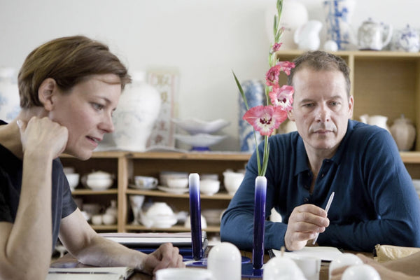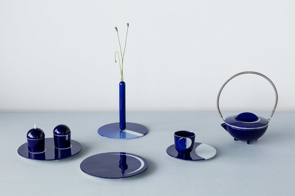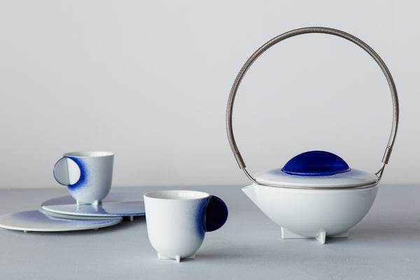 オランダで活動するスタジオ・ウィキ・ソマーズは有田の伝統的な工芸と革新的な技術を組み合わせ、2つの現代的なティーセットを作りました。このティーセットは、有田焼の特徴とも言える瑠璃地の色や、古くから伝わる吹き付けの技法から発想を得て生み出されました。スタジオ・ウィキ・ソマーズは、有田の特徴的な文様と色を積極的に取り入れ、最新の技法と融合させることで、これまでにない工芸的なデザインのコレクションを生み出しました。