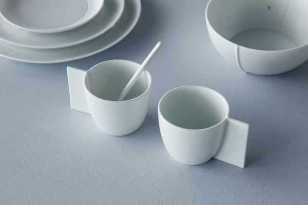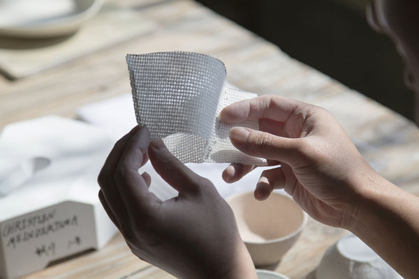 In return for the precious Japanese ceramics that 16th century Dutch traders returned laden with to The Netherlands, they presented the Shogun of the day with a ceremonial gift of Dutch linen cloth. From this origin, Dutch designer, Christien Meindertsma has come up with ‘Porcelain & Linen,’ a new range of Arita-ware celebrating this historical relationship. Using linen cloth, Meindertsma created models of cups, plates and bowls which were then reconstructed in ceramic form. This collection also makes use of a common glaze type, as well as a newly-developed glaze made from recycling the broken ceramic shards discarded by the 10 potteries contributing to the 2016/ project.