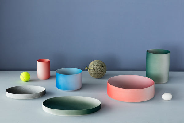 Swiss design duo Kueng Caputo proposed creating a collection that truly pushed Arita’s renowned craftsmanship to its maximum limits. Even today, a range of procedures in Arita’s ceramic industry are still carried out by hand especially those processes heavily reliant on extreme attention to detail. The standout characteristics of this series, comprising a flower vase, plate and bowl are the geometric forms sculpted by the craftsman and the use of an airbrush known as fukitsuki or ‘airblast’ which harnessed a special technique to apply subtle gradations of colour to the pieces.This intentional application of graded colour by the craftsmen involved gives this collection its outstanding geometric appearance.